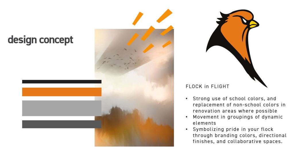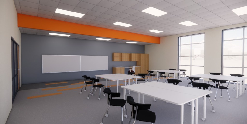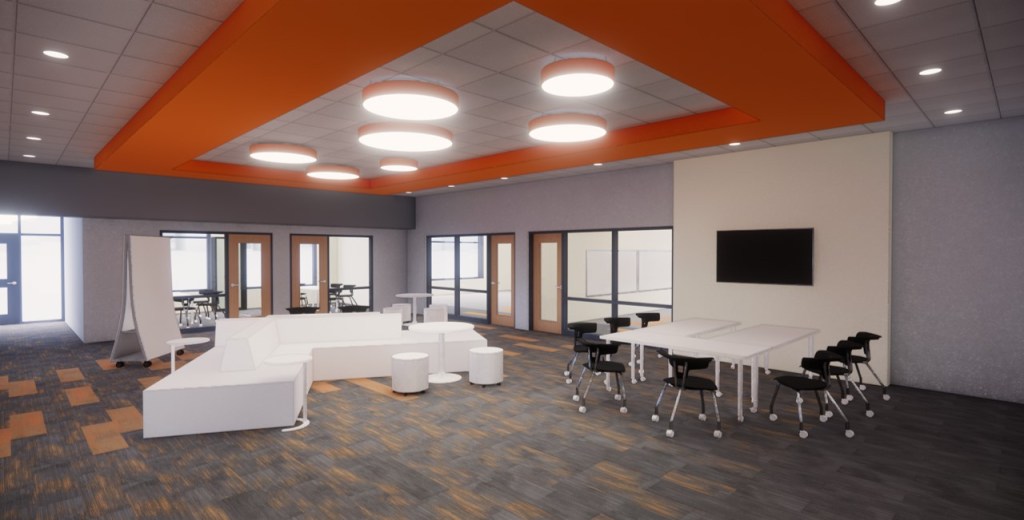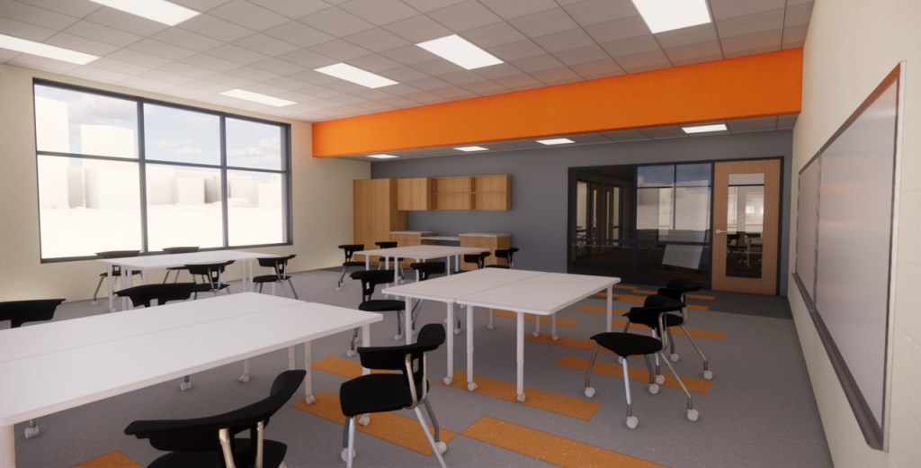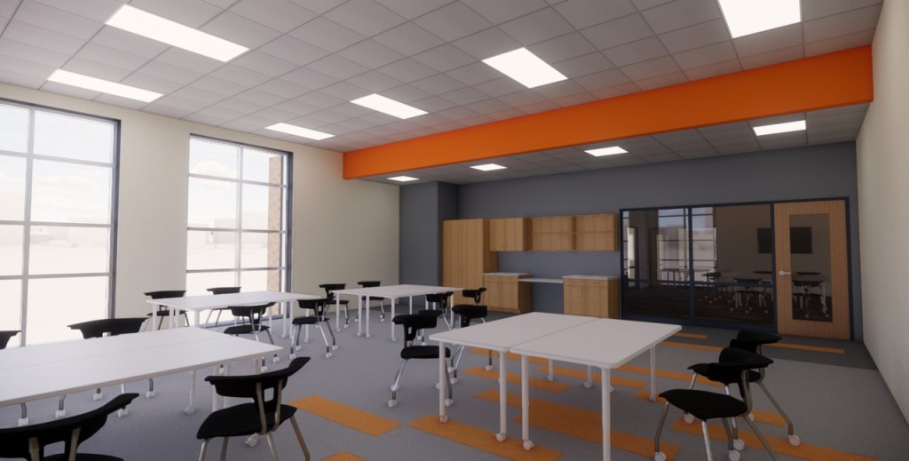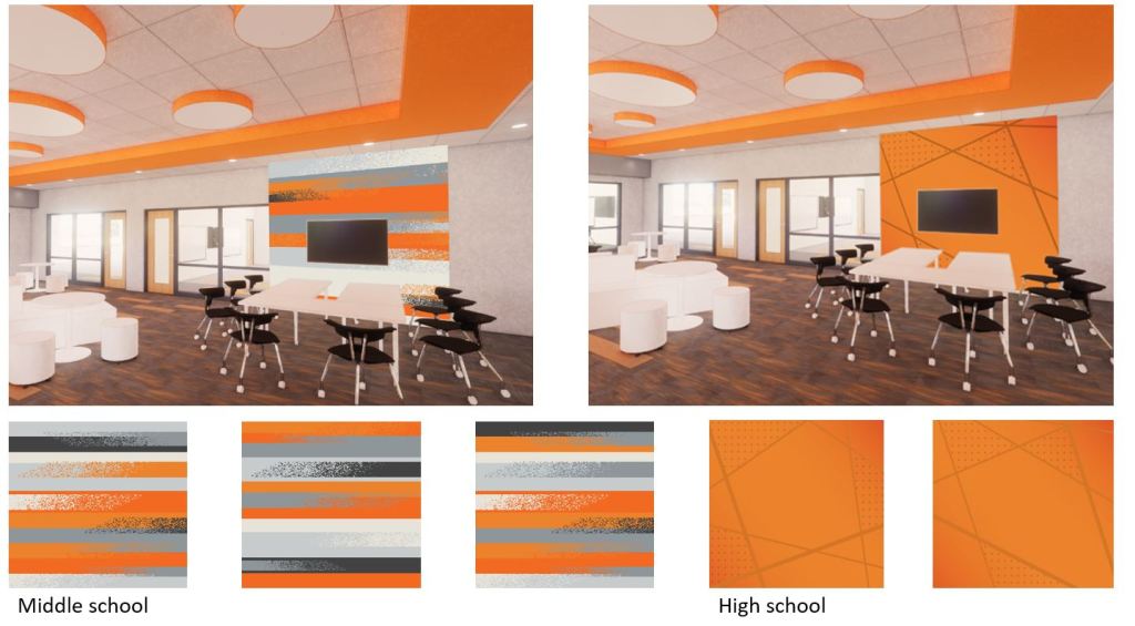 This client was fantastic to work with all through the design process. We worked through an addition to both their middle school and high school portions of their building as well as some renovations of their existing spaces. They were interested in incorporating Environmental Branding as well, so we were able to work with our graphic designer to integrate that into their design solution. Our team also helped facilitate a furniture process for them to work with a trusted vendor.